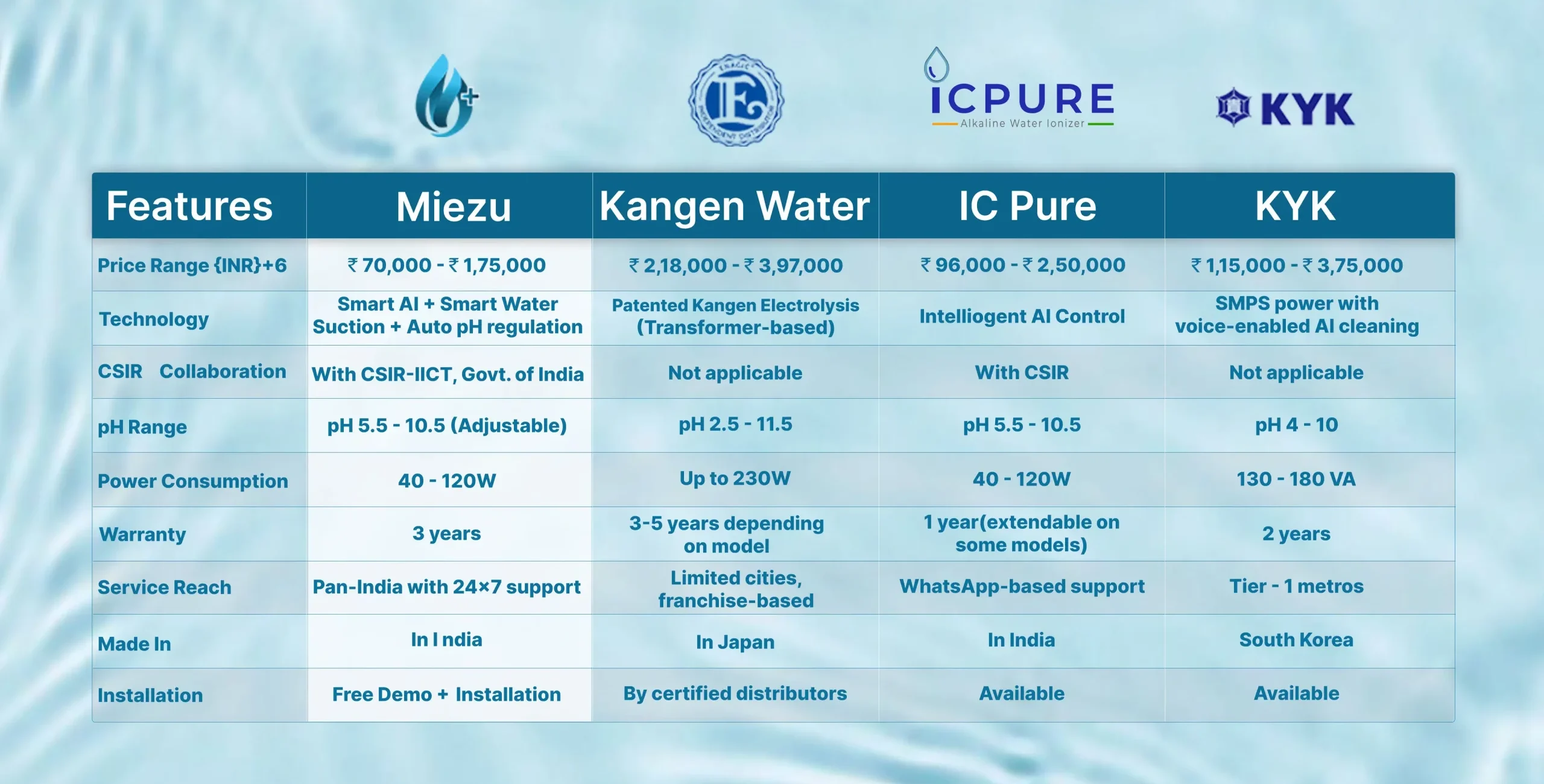 - Indian grade alkaline water ionizer developed in collaboration with CSIR–IICT (Govt. of India)